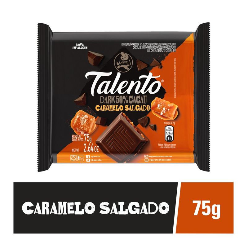 Chocolate Garoto Talento Dark Caramelo Salgado 75g