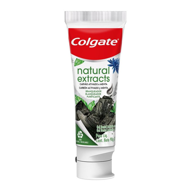 O creme dental Colgate Natural Extracts Carvão Ativado e Menta, com flúor, é uma explosão de sabores surpreendentes para o cuidado do seu sorriso com refrescância.