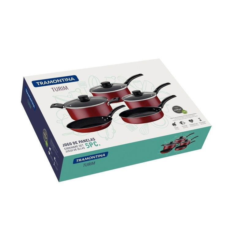 Bazar E UtilidadesUtilidades De CozinhaPanelas E FrigideirasJogo Panela Alumínio Tramontina Turin 5 Peças Vermelha