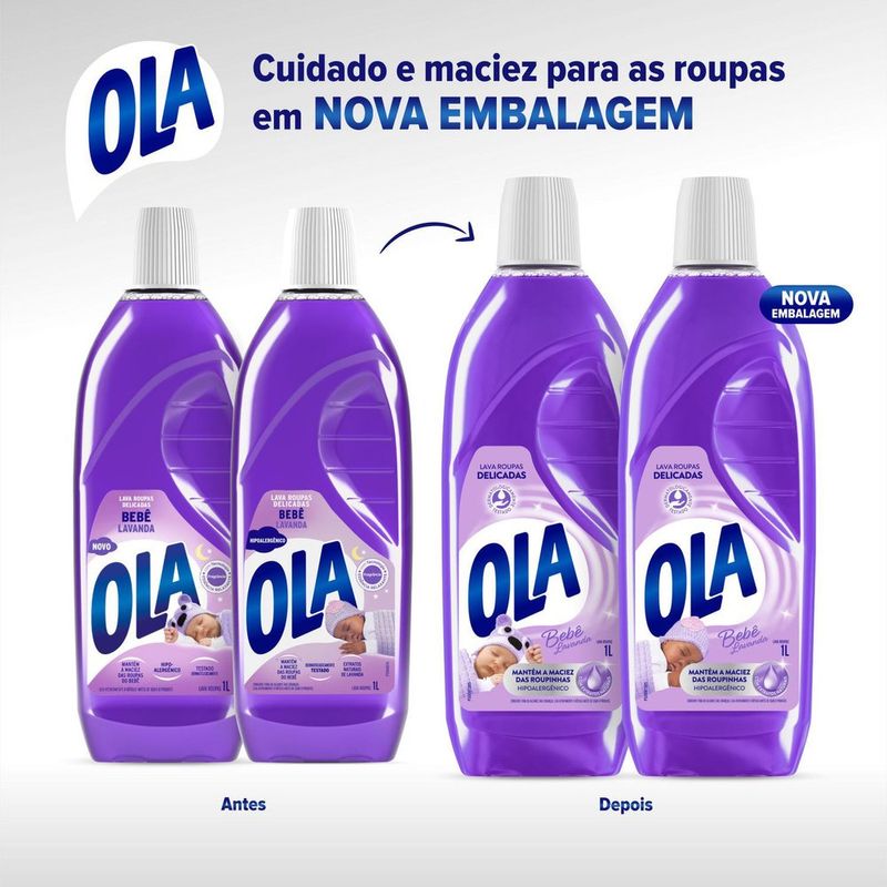 Este novo OLA Bebê tem fragrância de lavanda, um extrato natural com propriedades calmantes, perfeito para limpar o pijama e as roupas de cama e banho dos pequenos!