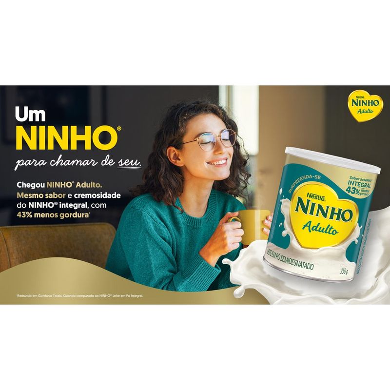 NINHO® ADULTO. UM LANÇAMENTO SURPREENDENTE!  A sua marca do coração tem um lançamento inacreditável para você saborear o gostinho da infância fazendo escolhas mais saudáveis na vida adulta. NINHO® ADULTO une todo o sabor e a cremosidade do NINHO® LEITE INTEGRAL com incríveis 43% MENOS gorduras totais! Só provando para acreditar!