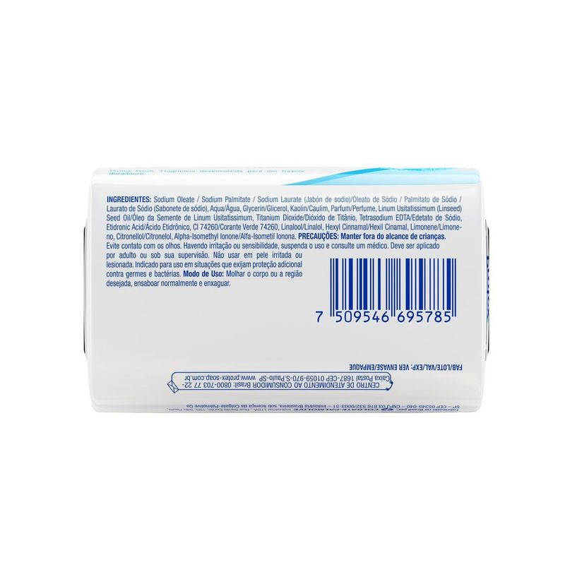 Protex Fresh cuida da pele do corpo, fragrância desenvolvida para um frescor duradouro. Oferece proteção antibacteriana natural com óleo de linhaça e Elimina 99,9% das bactérias (após lavar as mãos com sabonete por 40 segundos), mantendo você protegido por até 12 horas (bactérias testadas: E. coli, C. acnes, S. pyogenes, S. pneumoniae).