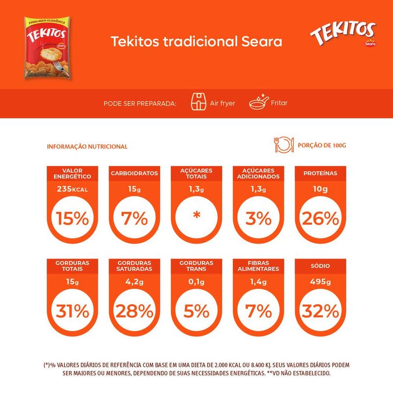 Tekitos Tradicional é um produto prático e rápido para o seu dia a dia. Com tempero suave, casquinha crocante e massa branquinha garante um produto muito saboroso para matar sua fome.