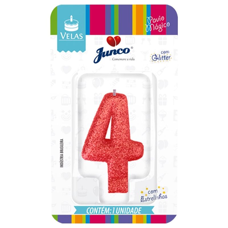 Vela Aniversário Junco Com Gliter Vermelha N 4